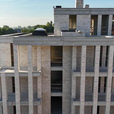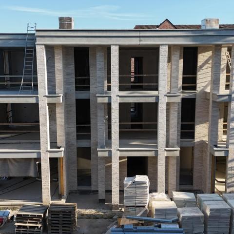 Voor een nieuwbouwproject in Zaffelare, produceerden we in opdracht van E-L Bouwpartners een 800 betonelementen, gaande van dorpels en plinten, over dekstenen tot zwevende balken.